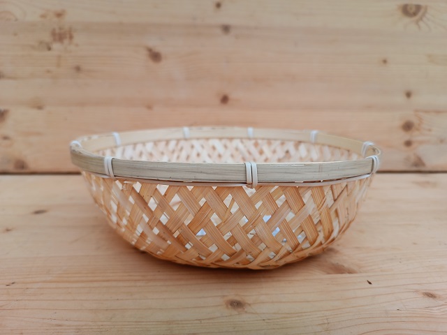 Lehká bambusová ošatka. Rozměry: průměr 24 cm, výška 8 cm.