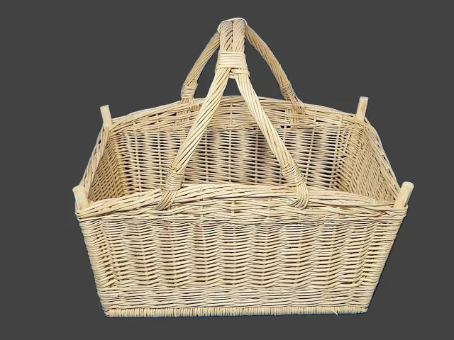 Proutěný obdélníkový koš na dřevo vyrobený z běleného proutí s vypleteným dnem. Rozměry 60 x 40 cm, výška 32 cm bez ucha, 52 cm s uchem.