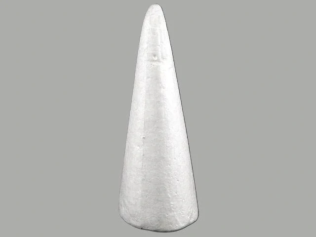 Polystyrénový výlisek ve tvaru kužele. Využijete např. k vyrobení vánočního stromečku, anděla. Rozměry - výška 390 mm, šířka základny 130 mm.