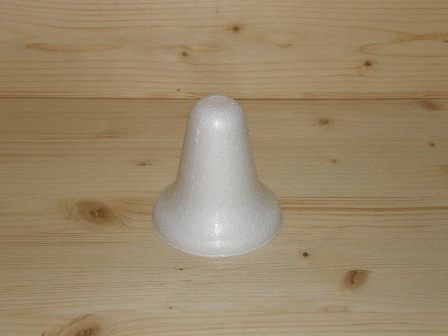 Polystyrenový výlisek ve tvaru zvonku lze použít jako formu při pletení miniatur.