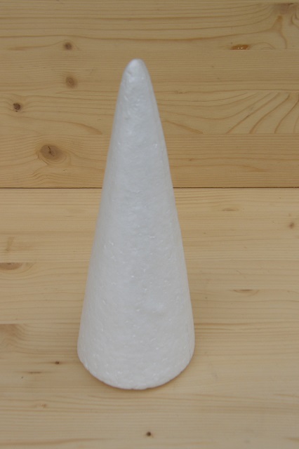 Polystyrénový výlisek ve tvaru kužele. Využijete např. k vyrobení vánočního stromečku. Rozměry - výška 245 mm, šířka základny 95 mm.